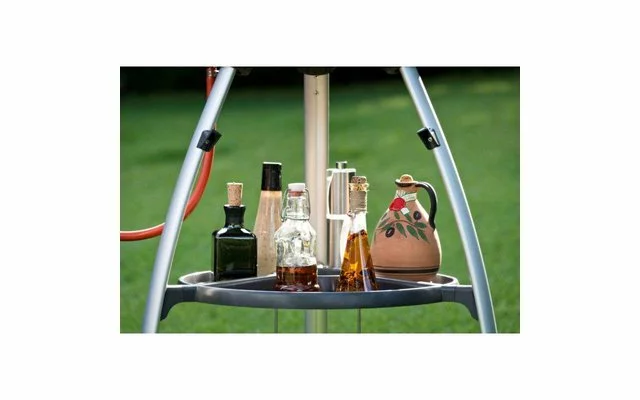 Las patas de aluminio de la Carri Chef se atornillan y desatornillan fácilmente, sin necesidad de herramientas. El estante entre las patas ofrece espacio adicional al asar y asegura un soporte sólido y estable para la parrilla.