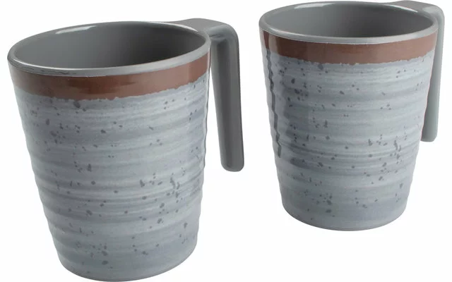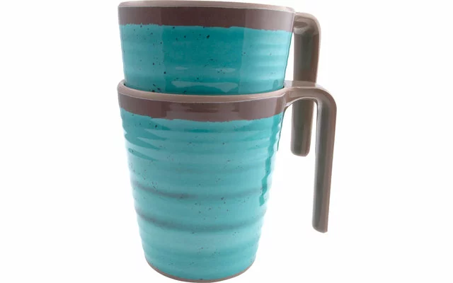 Una taza ligera y resistente con asa. Además, es prácticamente irrompible, inastillable y resistente a los arañazos. El juego consta de 4 tazas. Están fabricados en melamina, son aptos para el lavavajillas y para alimentos.