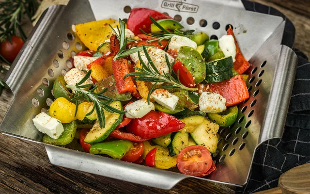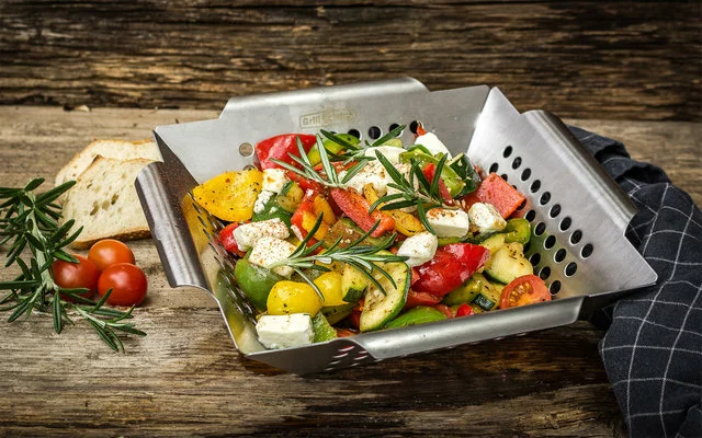 La cesta para verduras de acero inoxidable Grillfürst es un práctico ayudante para la barbacoa que no debería faltarle a ningún maestro de la barbacoa. Se puede utilizar de muchas maneras – no sólo para las verduras – y por lo tanto también es popular entre los profesionales de la barbacoa.