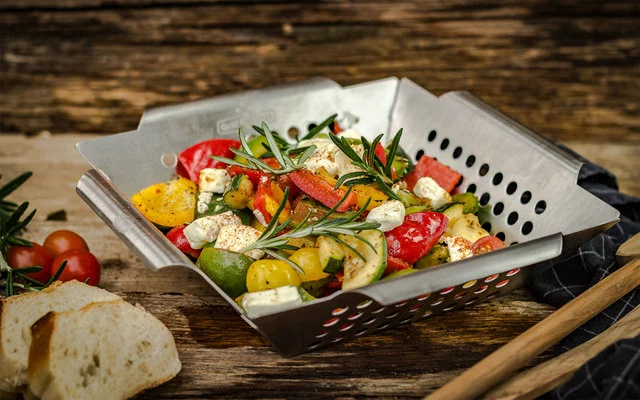 Con lacesta para verduras de acero inoxidable Grillfürst, no sólo podrá preparar deliciosas variaciones de verduras en su barbacoa, sino que también podrá utilizar la cesta para preparar pequeños alimentos a la parrilla, mariscos y otras delicias.