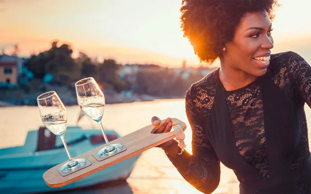 Las copas de cristal, nobles y de alta calidad, albergan imanes perfectamente integrados en la base de cristal y están disponibles en otras variantes como vino, champán, cerveza, trago largo y whisky.