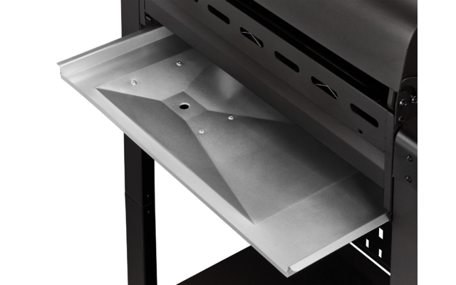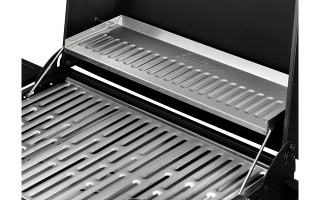 - la rejilla calientaplatos de acero inoxidable (45 x 14,5 cm) proporciona espacio adicional para los alimentos asados