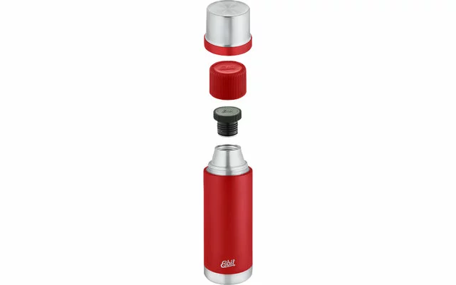 En cuanto a las características de la botella, nos hemos reducido a lo esencial: Un práctico cierre de giro y vertido, un revestimiento de polvo especialmente resistente y un vaso adicional para la de 1 litro, que se ha convertido en una característica distintiva de las clásicas botellas isotérmicas Esbit.