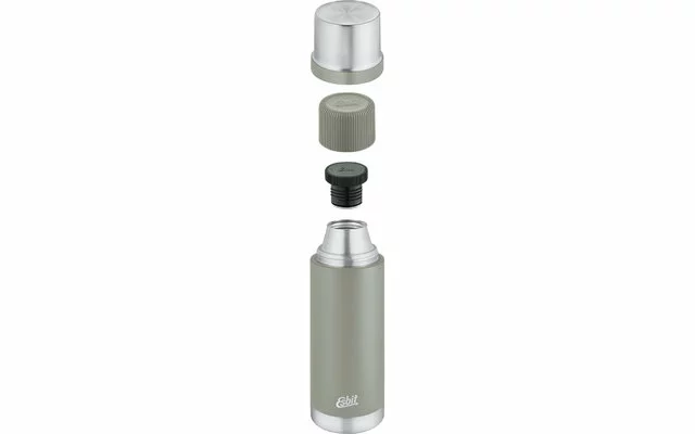 En cuanto a las características de la botella, nos hemos reducido a lo esencial: Un práctico cierre de giro y vertido, un revestimiento de polvo especialmente resistente y un vaso adicional para la de 1 litro, que se ha convertido en una característica distintiva de las clásicas botellas isotérmicas Esbit.
