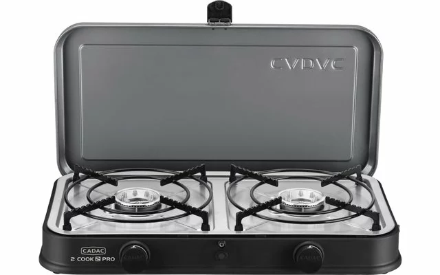 El ligero 2-Cook es ideal para acampar o ir en caravana y funciona con una botella de gas normal (no incluida).