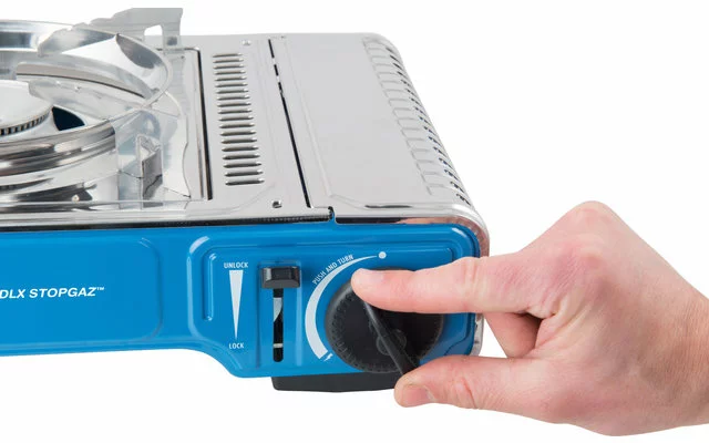 Para facilitar el transporte y el almacenamiento seguro, la cocina de gas de un quemador se suministra en un maletín de plástico