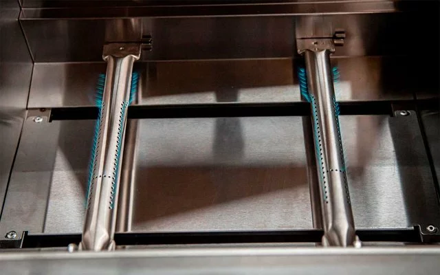 - 2 quemadores de varilla de acero inoxidable ajustables por separado con 2,2 kW cada uno para la zona de asado directo e indirecto