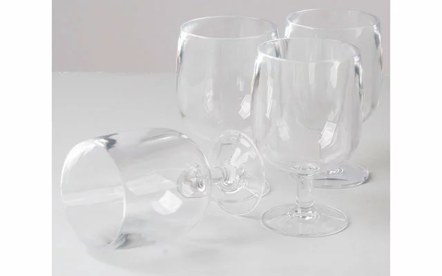 Un juego de 4 copas de vino compactas y apilables. Fabricado en plástico resistente, prácticamente irrompible y ligero. La atracción de tus viajes de acampada.