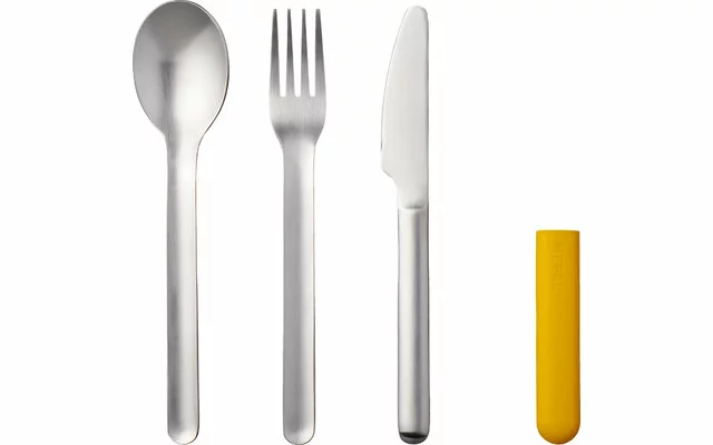 El elegante juego de cubiertos Bloom es perfecto para viajar. El juego de cubiertos con un tenedor, un cuchillo y una cuchara está fabricado completamente en acero inoxidable, lo que lo hace robusto y duradero. El práctico mango de plástico mantiene los tres cubiertos firmemente unidos como una unidad. La cubertería de 3 piezas Bloom está disponible en muchos y atractivos colores, para que pueda encontrar el juego de cubiertos adecuado para su serie de vajilla.