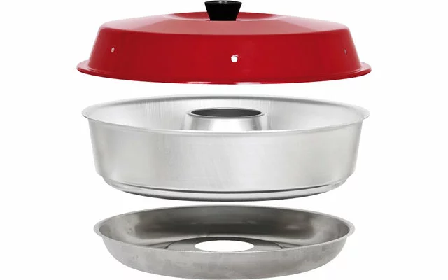 - La tapa roja tiene pequeños agujeros de ventilación y una altura suficiente para que los pasteles y el pan suban correctamente.