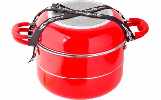 Accesorios: 1 posavasos de bambú, 1 soporte para cuchara de cocina, 1 asa, 1 correa tensora (100% poliéster), 1 caja de transporte plegable.