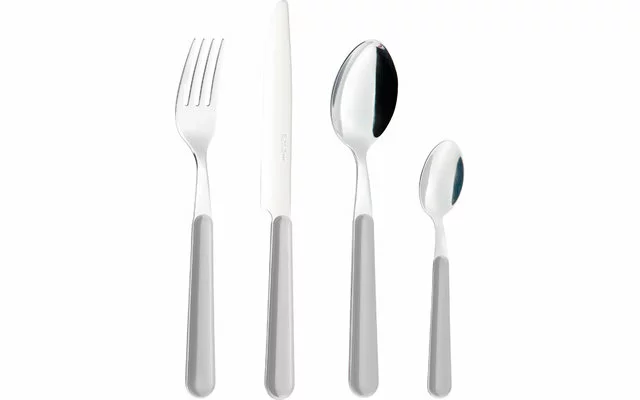 Cubiertos de acero inoxidable de alta calidad con mangos de plástico de colores para 4 personas. Agradable al tacto, apto para el lavavajillas y robusto. Se entrega en una práctica caja de cubiertos.