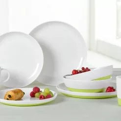 2 tazas (350 ml), 2 cuencos (Ø 17,7 cm), 2 platos de postre (Ø 21,2 cm), 2 platos llanos (Ø 25 cm)