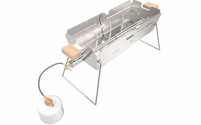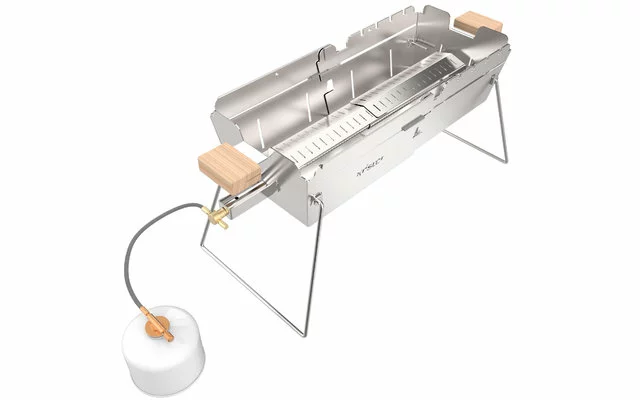 Esta innovación está lista para su uso inmediato y no necesita ser configurada. El tubo de combustión y los paneles radiantes se extienden automáticamente al separar la parrilla. Las rejillas de 2 zonas ajustables en altura para la carne y las verduras proporcionan una superficie de asado superior a la media. La temperatura óptima se alcanza tras sólo 2 minutos. Si es necesario, la unidad de combustión se puede retirar para asar con madera o carbón.