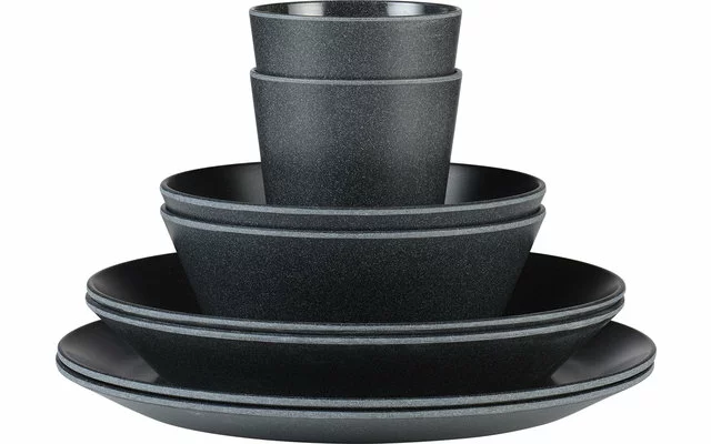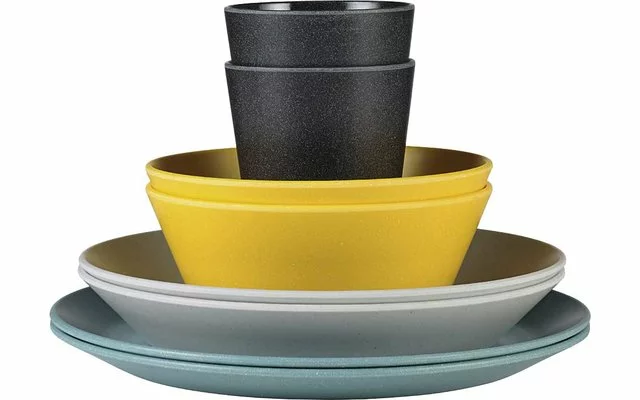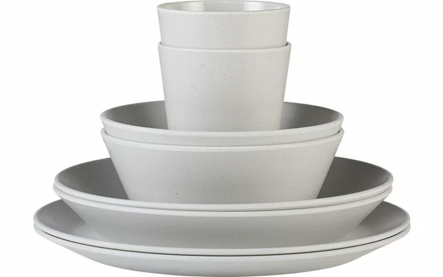 Un juego de melamina tan bonito que no sólo querrá utilizarlo fuera de casa La vajilla Bloom tiene un acabado mate único inspirado en los guijarros cuya superficie es pulida por el viento y el agua. Por supuesto, el juego es 100% libre de bisfenol A, resistente a los arañazos y apto para el lavavajillas. Además, es apilable, robusto y a la vez ligero. Todas las características para una acogedora cena de camping en el verde, en la terraza de la azotea, una barbacoa en el jardín o una comida en el balcón. El conjunto puede ampliarse como se desee con las piezas individuales Bloom disponibles.