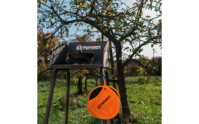 Las agarraderas de Aramid con mango le ofrecen una protección práctica a temperaturas de contacto de hasta 250 °C. Las agarraderas están forradas con fibras de aramida y, gracias a su gran abertura, pueden colocarse cómodamente sobre las manos y protegerle de forma fiable de las quemaduras durante sus aventuras culinarias. La superficie de ante natural confiere a las agarraderas una resistencia adicional y un agarre ideal al mismo tiempo. Esto le permite colocar las ollas y sartenes sin problemas sobre la chimenea o la barbacoa. Las agarraderas también facilitan la colocación de los utensilios de cocina. En color naranja Petromax al rojo vivo con el logotipo tradicional, añaden una pieza visualmente fuerte a su equipo de cocina al aire libre. Por supuesto, también puede utilizar las agarraderas de aramida con asas en los fogones de casa.