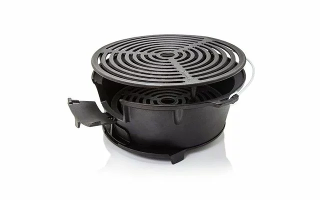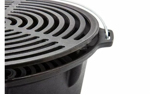 Dado que la barbacoa siempre está caliente, el efecto antiadherente natural de la parrilla de hierro fundido es una ventaja decisiva. Con el carbón y las briquetas para barbacoa, su parrilla se calienta rápidamente y durante mucho tiempo. Puede combinar la parrilla de fuego con una olla de fuego (Dutch Oven) para que el excelente almacenamiento de calor haga que se cocine con especial ahorro de energía.