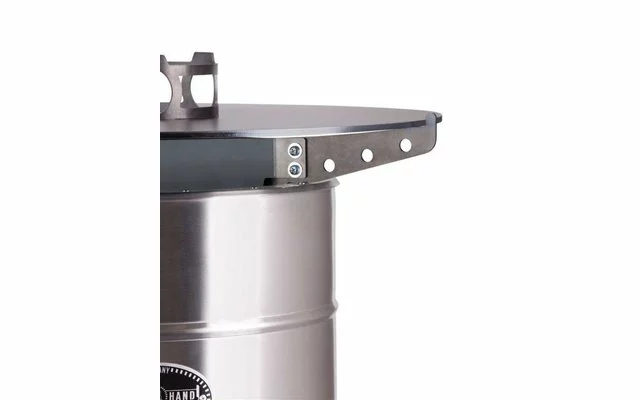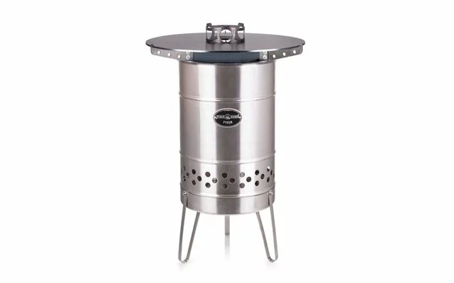El accesorio de cocción en el centro de la placa sirve de soporte estable para ollas, calderas y jarras. Puedes aprovechar el calor del Pyron para preparar platos completos con tus amigos en la placa de 57 cm de ancho. Incluso con los utensilios de cocina encima, los generosos huecos proporcionan al barril de fuego suficiente oxígeno fresco para mantener el fuego encendido. Además, el orificio en el centro de la parte superior permite rellenar la madera de forma segura durante su uso. Lea atentamente el manual de instrucciones adjunto antes de utilizarlo por primera vez.