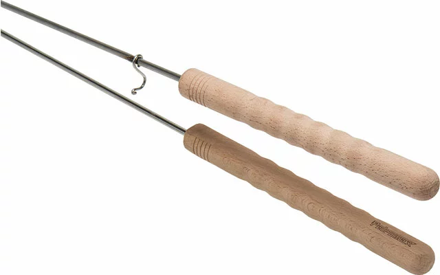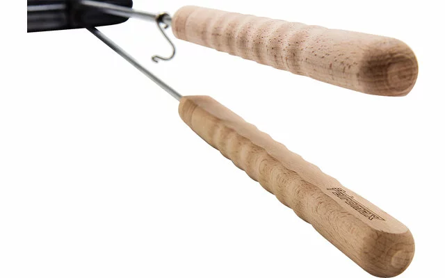 Las asas de madera son cómodas de sujetar y la varilla larga garantiza una distancia suficiente de la fuente de calor