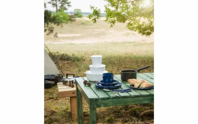 Plato de desayuno azul oscuro con un diámetro de 22 cm de la serie de vajilla Basic (ocio) de Mepal. Este juego de camping existe desde hace más de 30 años y se ha convertido en un verdadero clásico. El plato de desayuno azul p22 está fabricado en melamina resistente a los arañazos y es apto para interiores y exteriores. Apilable, irrompible, ligero y también práctico: después de su uso, el plato puede meterse simplemente en el lavavajillas
