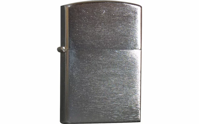 Una réplica de los clásicos encendedores de gasolina con tapa abatible. Por supuesto, no se puede comparar con los originales, pero su precio es mucho menor.