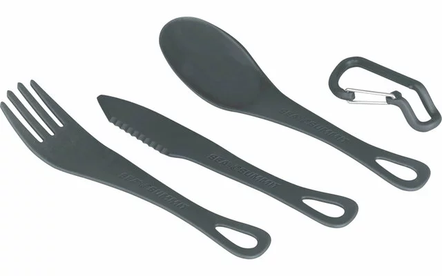 - El agarre del pulgar Easy Hold en el bol y el plato también funciona como un bucle de mosquetón para los cubiertos