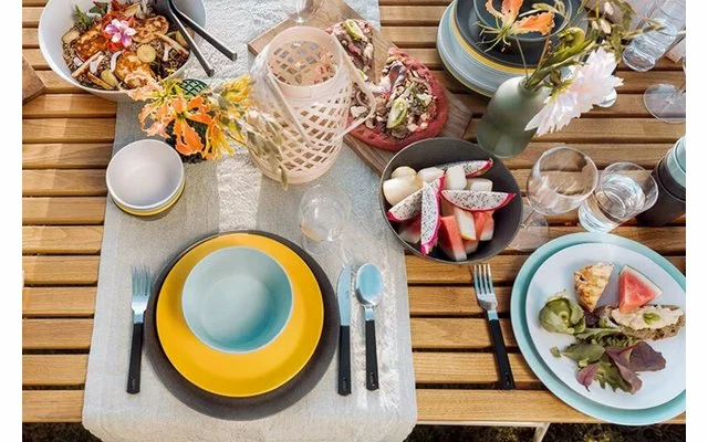 La superficie del robusto material se ha inspirado en la estructura natural de los guijarros, lo que confiere a la taza un acabado moteado y mate único. Por supuesto, la taza es 100% libre de BPA, ligera y perfectamente apilable. Ideal para una acogedora cena de verano en la azotea, para acampar o para hacer un picnic en el campo